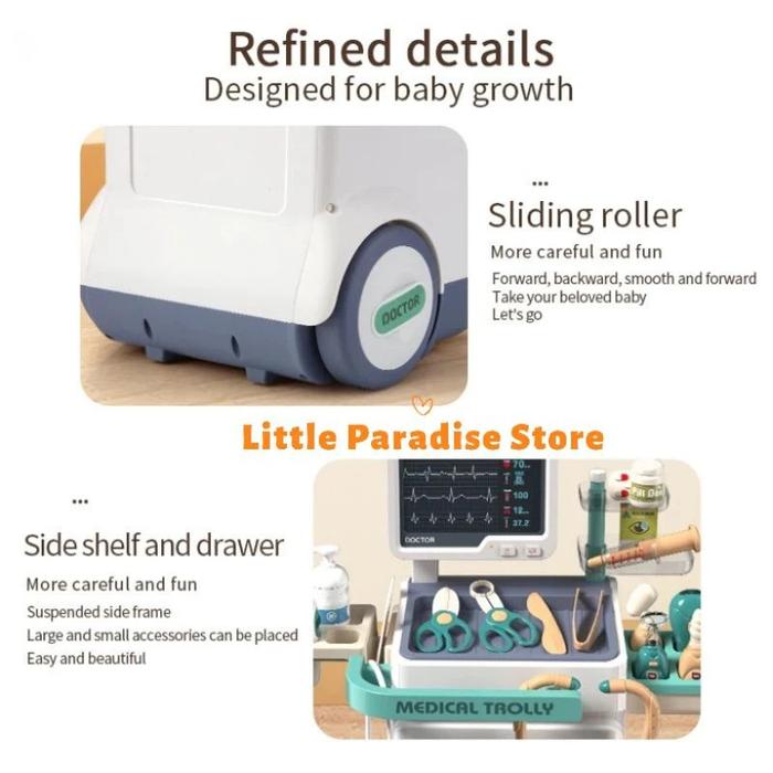 JIQILE MAINAN DOKTER DOKTERAN ANAK 115CM PRETEND PLAY ANAK TROLLY MAINAN DOCTOR KOMPLIT SET TOY MAINAN DOCTOR KOMPLIT - 49PCS MEJAKASIR PINK