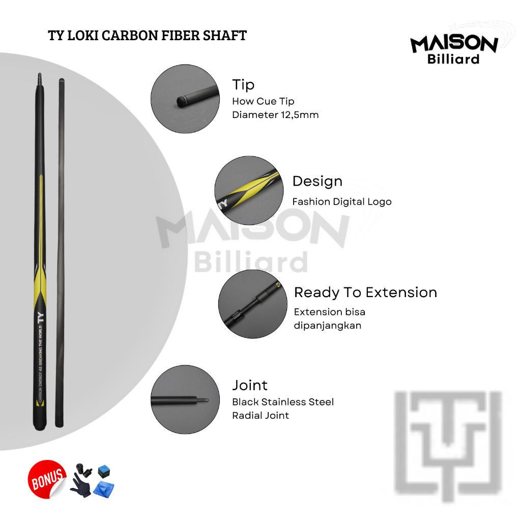 TY LOKI Stick Billiard Carbon + Teleskopik Hitam Stainless Steel Radial Joint Diameter 12.5 mm