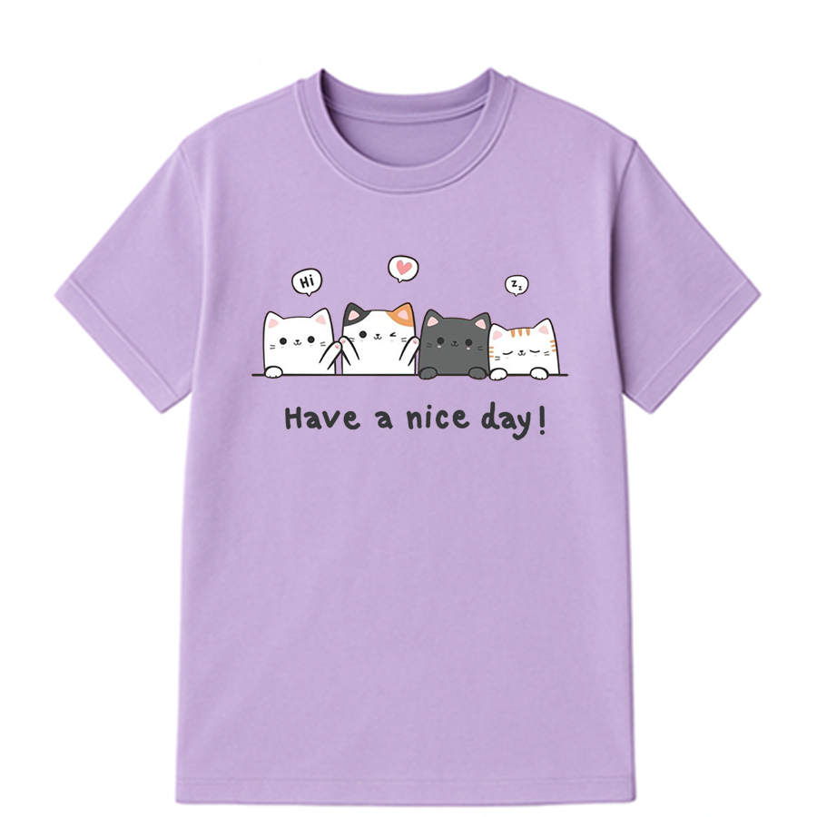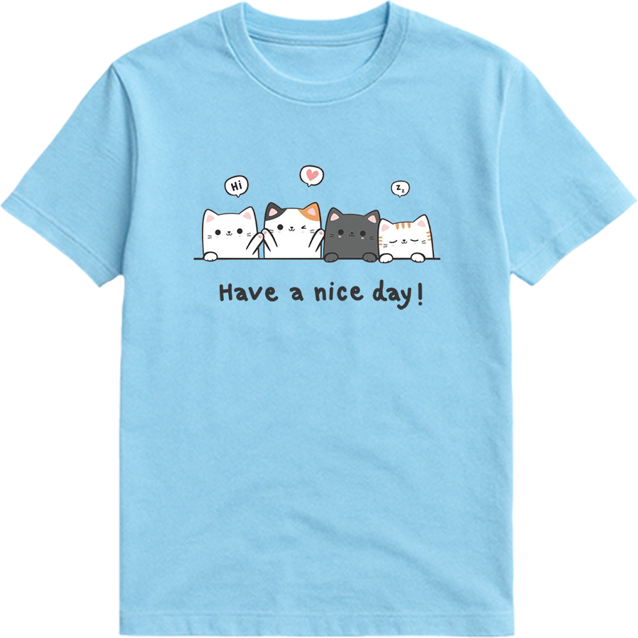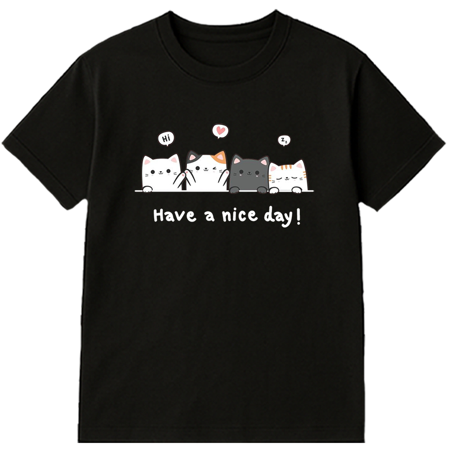Baju Kaos Kucing Have A Nice Day Wanita Dewasa Jumbo Oversize Lucu Lengan Pendek
