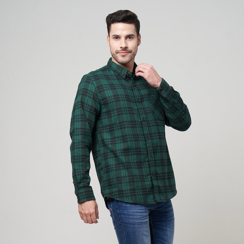 Peternation kemeja flanel pria wool basic panjang regular fit F1030