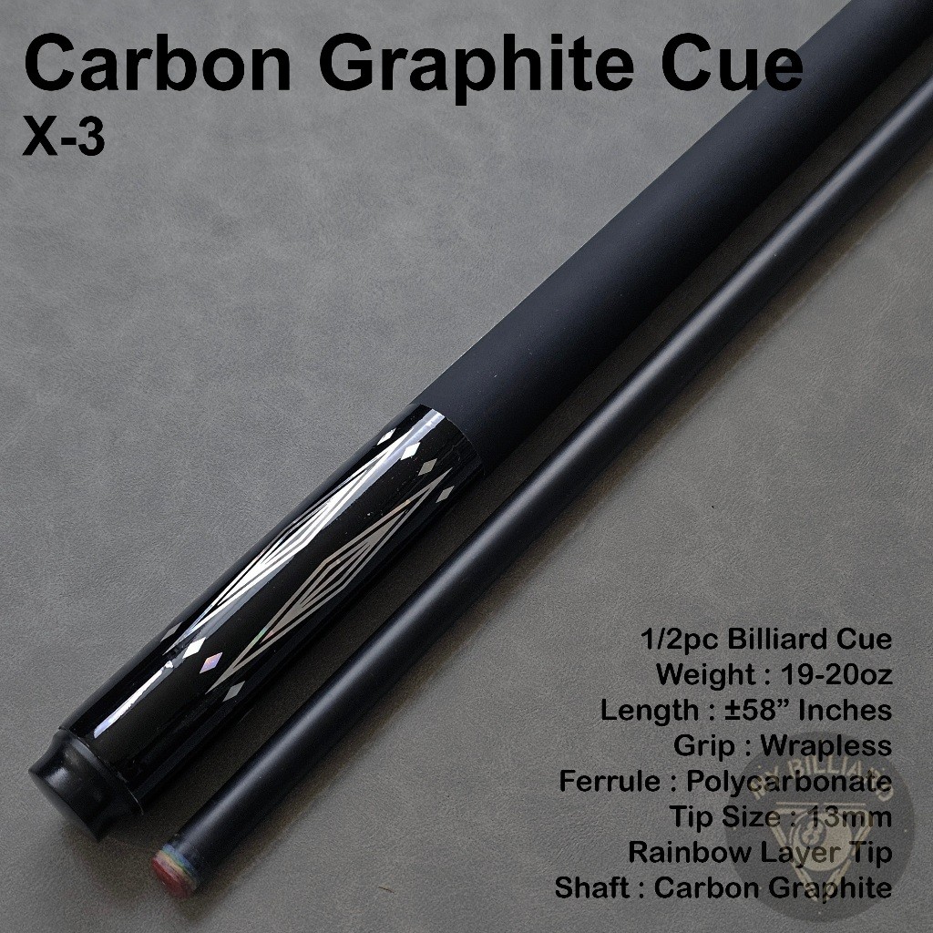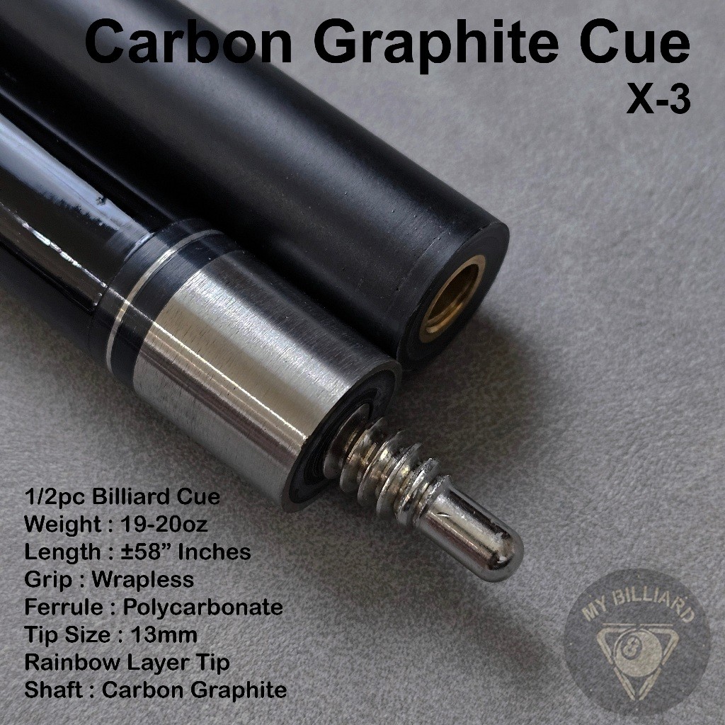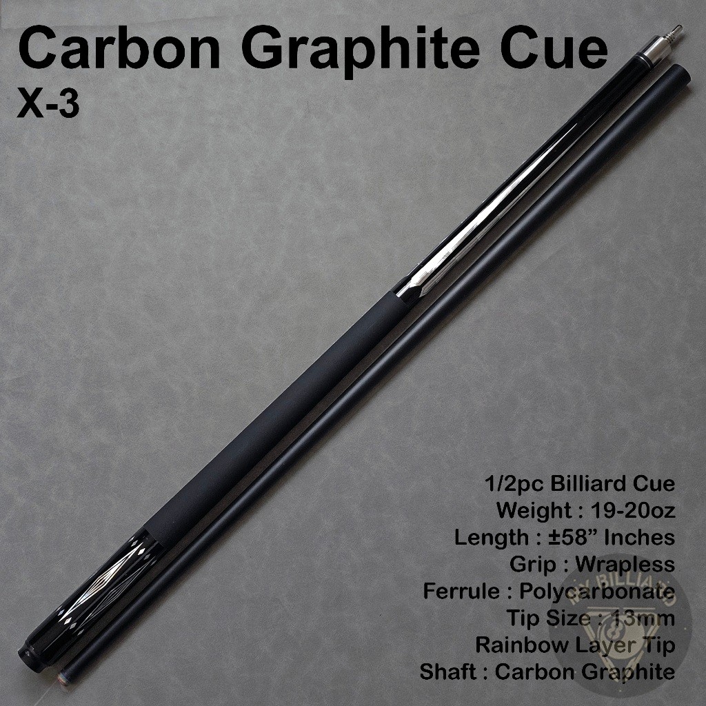 Carbon Cue X3 Billiard 13mm - Stik Billiar X-3 Cue Karbon Graphite Stick Billiard
