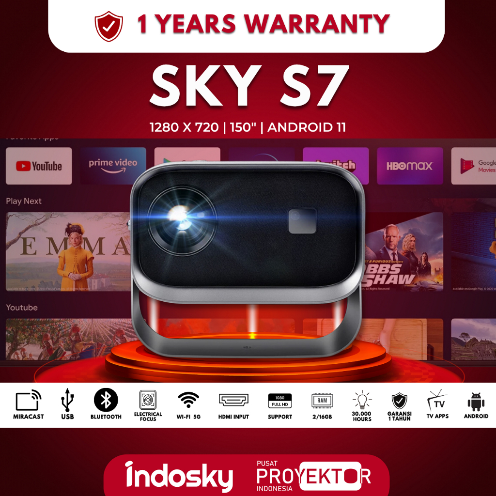 Proyektor Indosky Sky S7 Android Projector 1080p