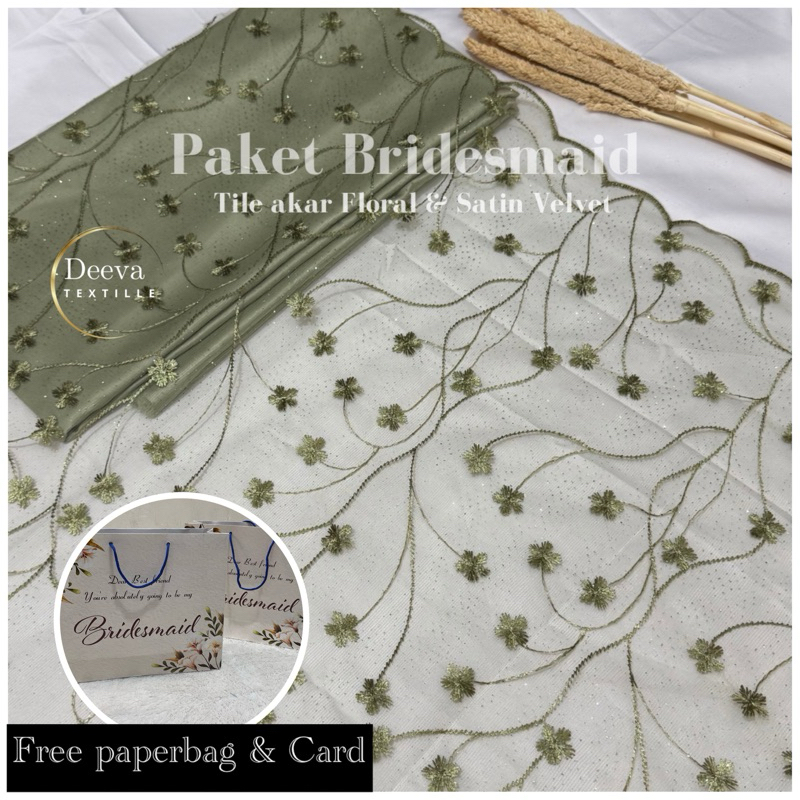 SetPaket Kain Bridesmaids Tile Akar Motif floral & Kain Satin