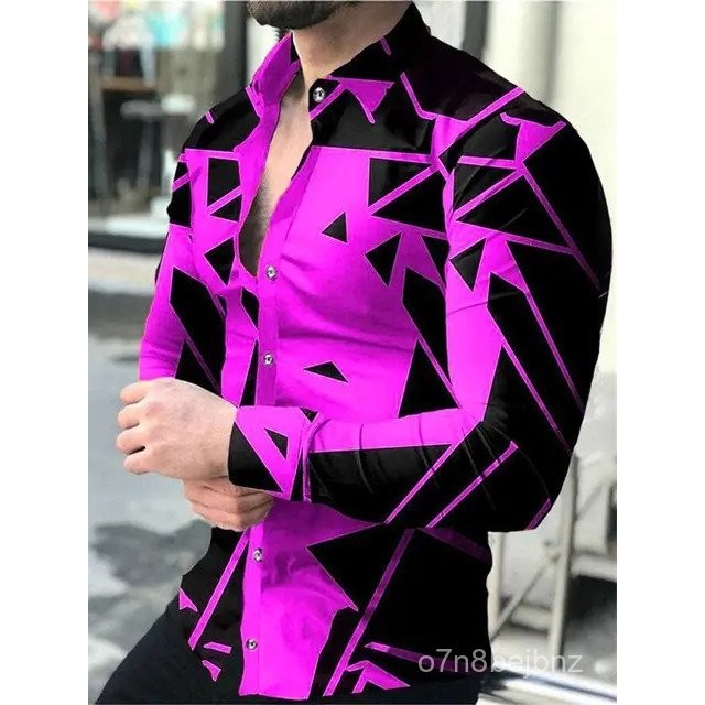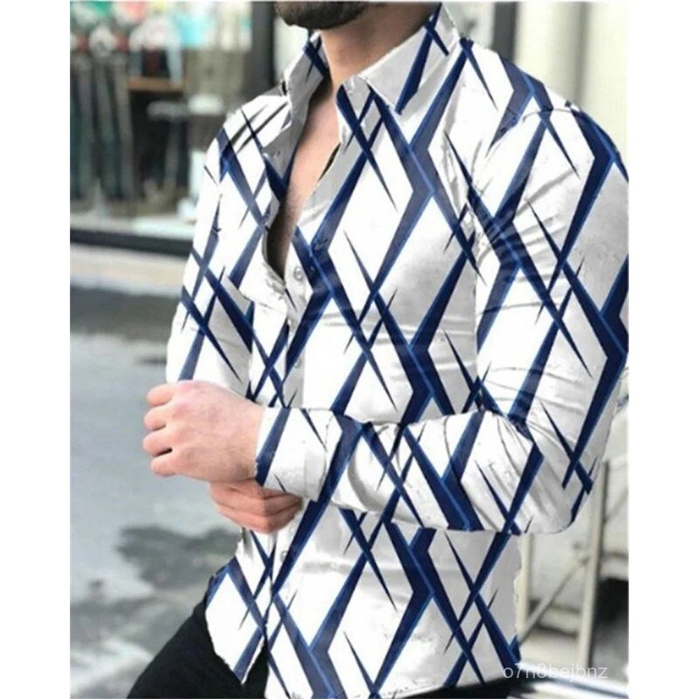 Fashion Luxury Hawaiian Shirts Red Plaid Print Shirts Men Fashion Shirt Long Sleeve Summer Beach Blouse Men's Clothing Vocation