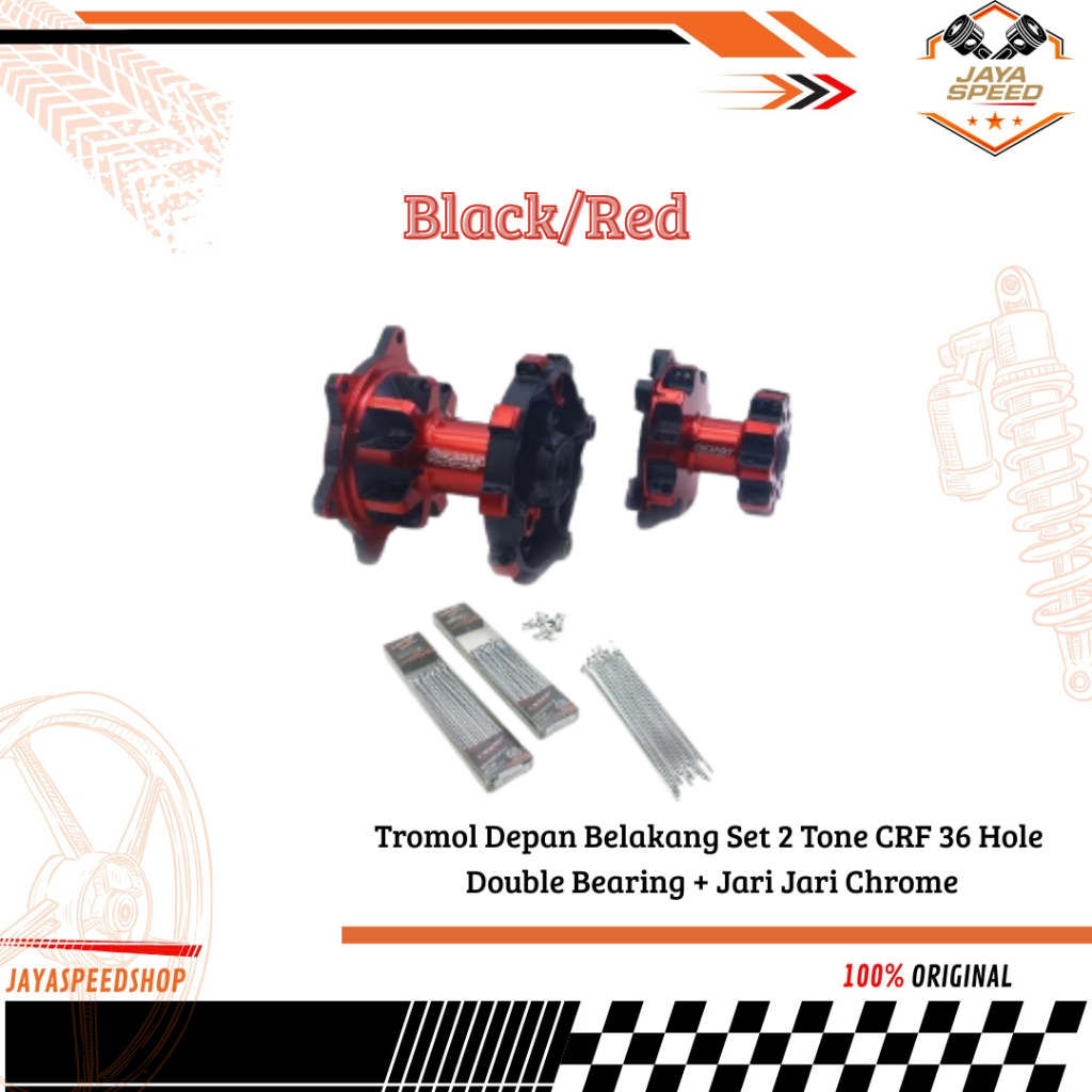 Scarlet Racing - Tromol Trombol Hub Trail Depan Belakang Set 2 Tone Crf 36 Hole Double Bearing + Jari Jari Chrome R 17