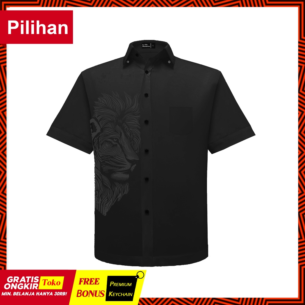 LVN - Kemeja Motif Singa Lion Kemeja Lengan Pendek | Kemeja trendy casual
