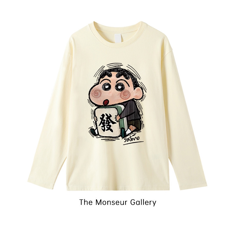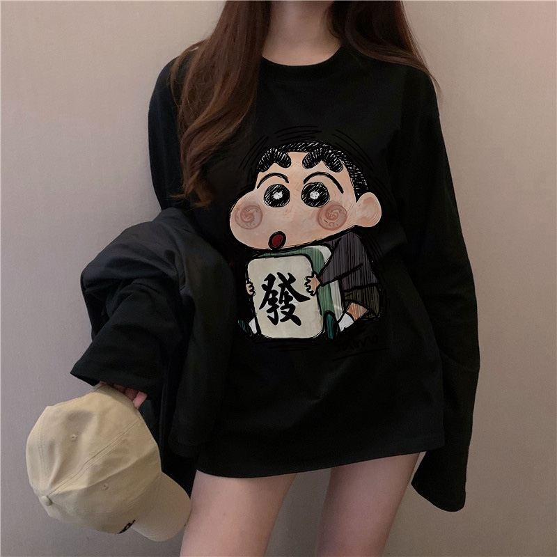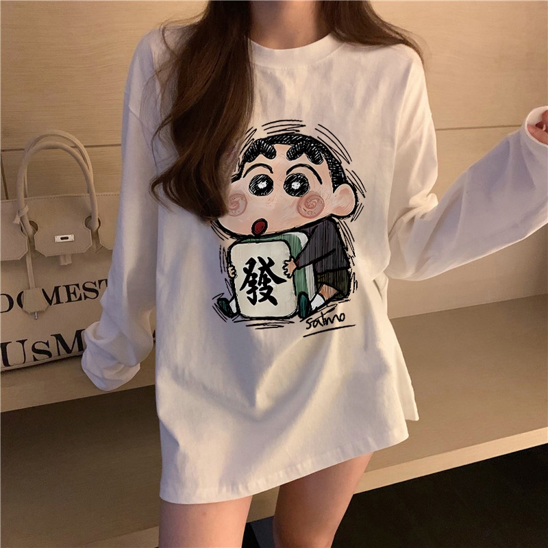The Monseur Gallery baju kaos wanita lengan panjang Kaos Oversize Wanita baju atasan wanita Get rich Crayon Shin-chan | Kaos Wanita Putih