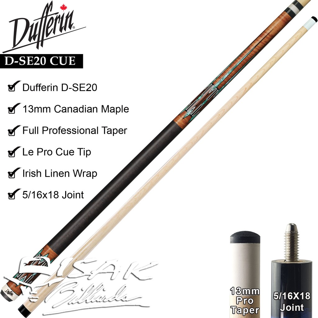 Dufferin D-SE20 Pool Cue - Canada Maple Billiard Stick Stik Biliar Duferin Asli