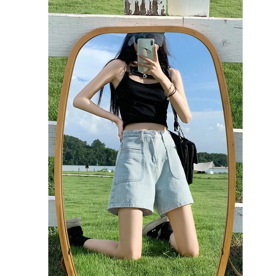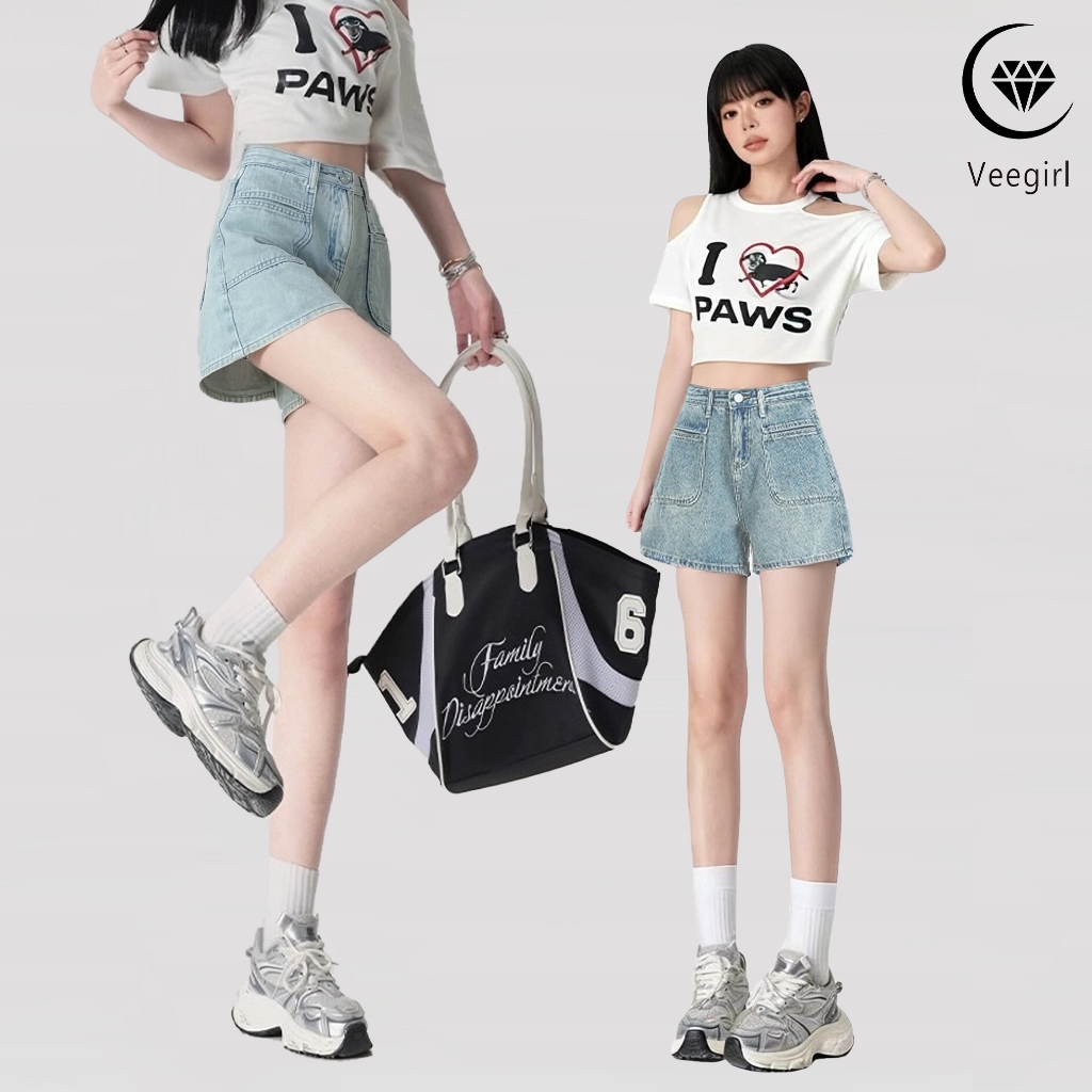 Veegirl Celana Pendek Jeans Wanita High Waist Korean Look Aesthetic Street Style Longgar Modis