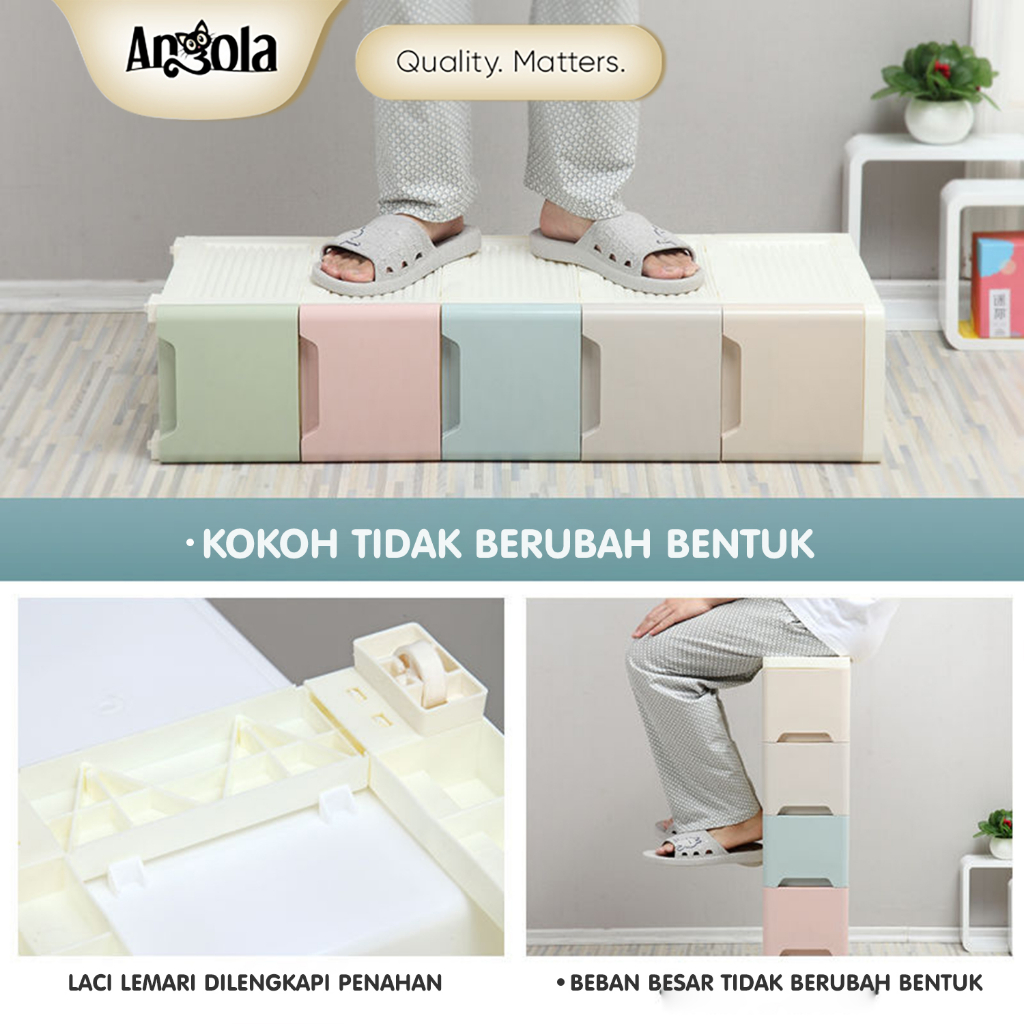ANGOLA Lemari Plastik Pakaian 3 6 Tingkat G15G16 Laci Susun Plastik Serbaguna