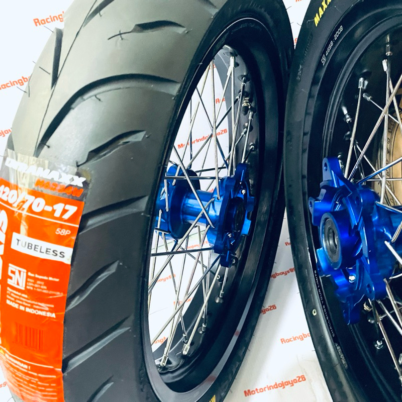 Whellset Velg Supermoto Crf 150 L Scarlet Tromol Full Cnc Ban 120-140 Maxxis
