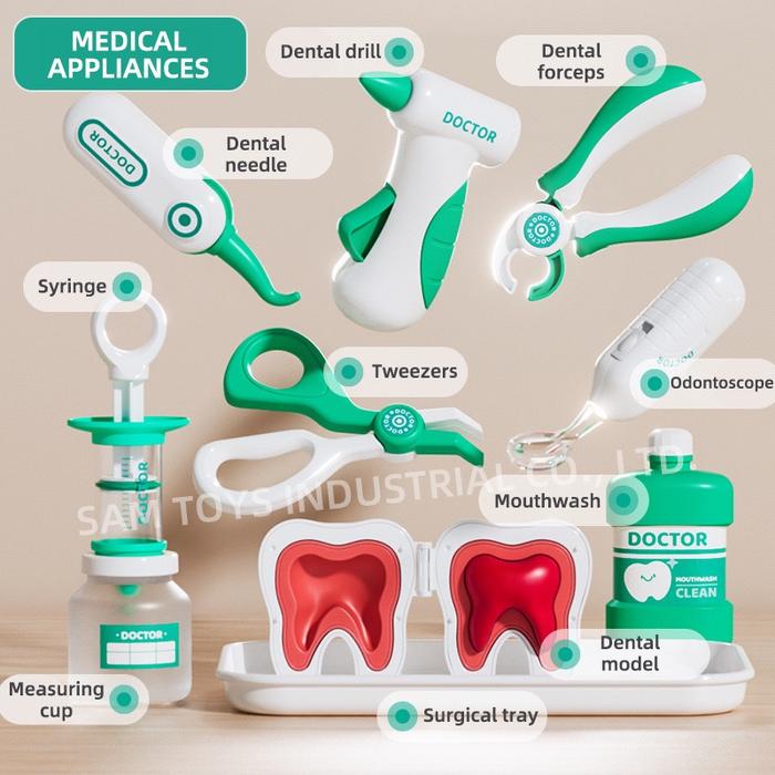 ZEN-065 - MAINAN DOKTER ANAK / MAINAN MEDICAL DOKTER ANAK SET LENGKAP / MAINAN DOKTER GIGI ANAK / DENTIST PLAYSET - WARNA, SET HIJAU
