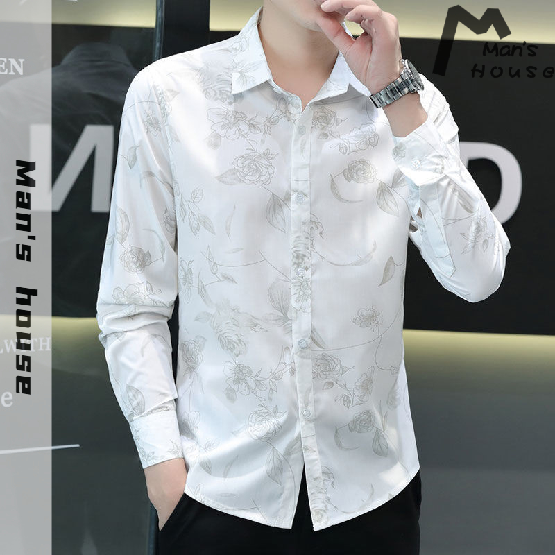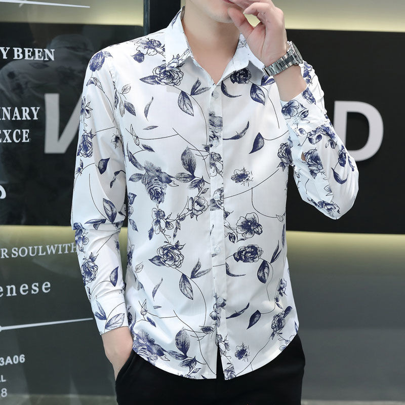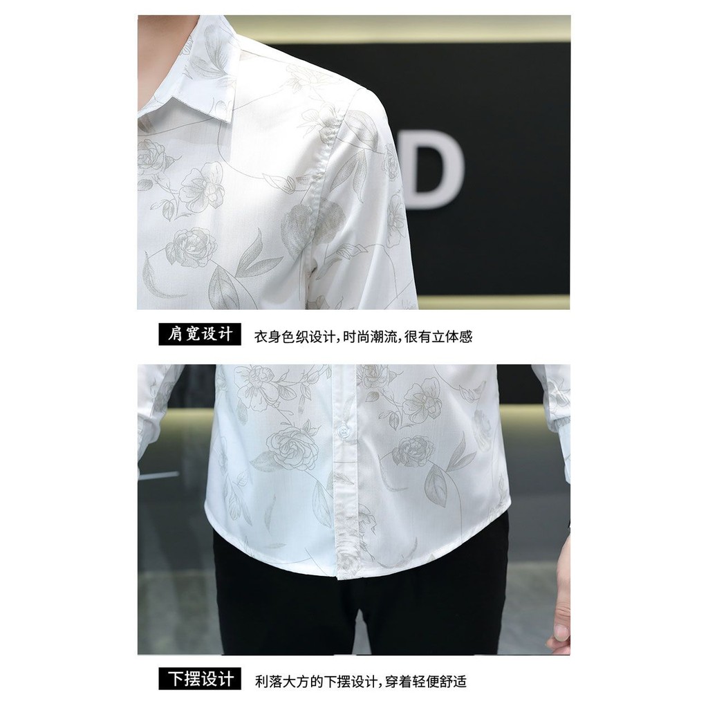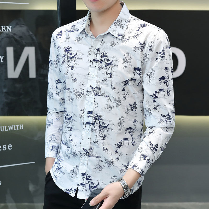 Kemeja Motif Gaya Tiongkok untuk Pria, Kaus Motif Tren Antikeriput Tidak Disetrika, Tinta untuk Pria