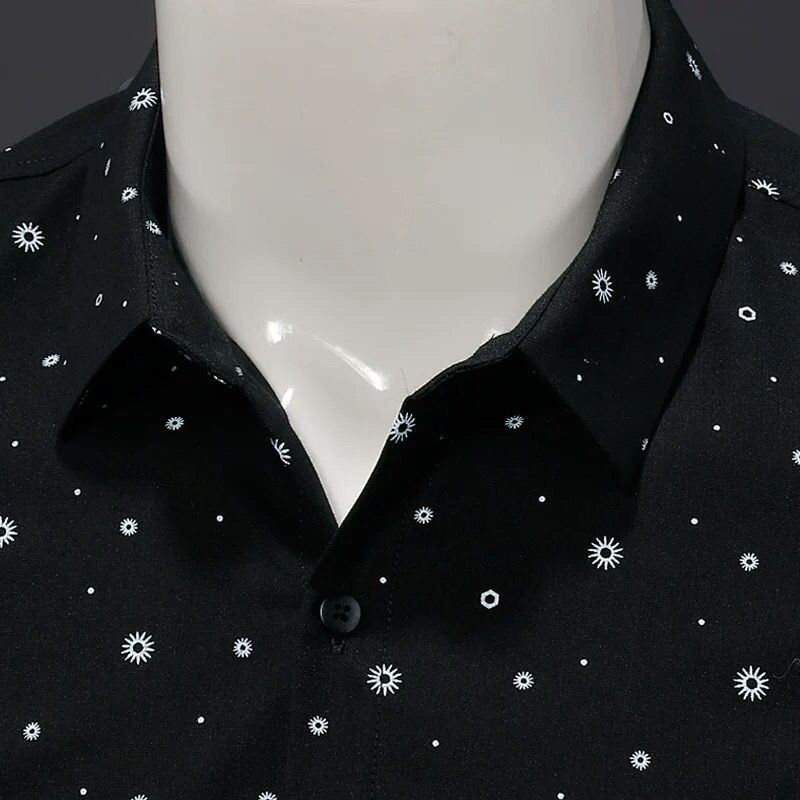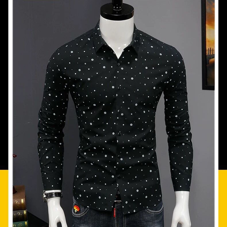 Kemeja Pria Lengan Panjang Slim-Fit,Tampan Pemuda Korea Pakaian Pria Trendi Kemeja Polkadot