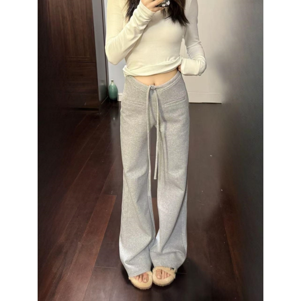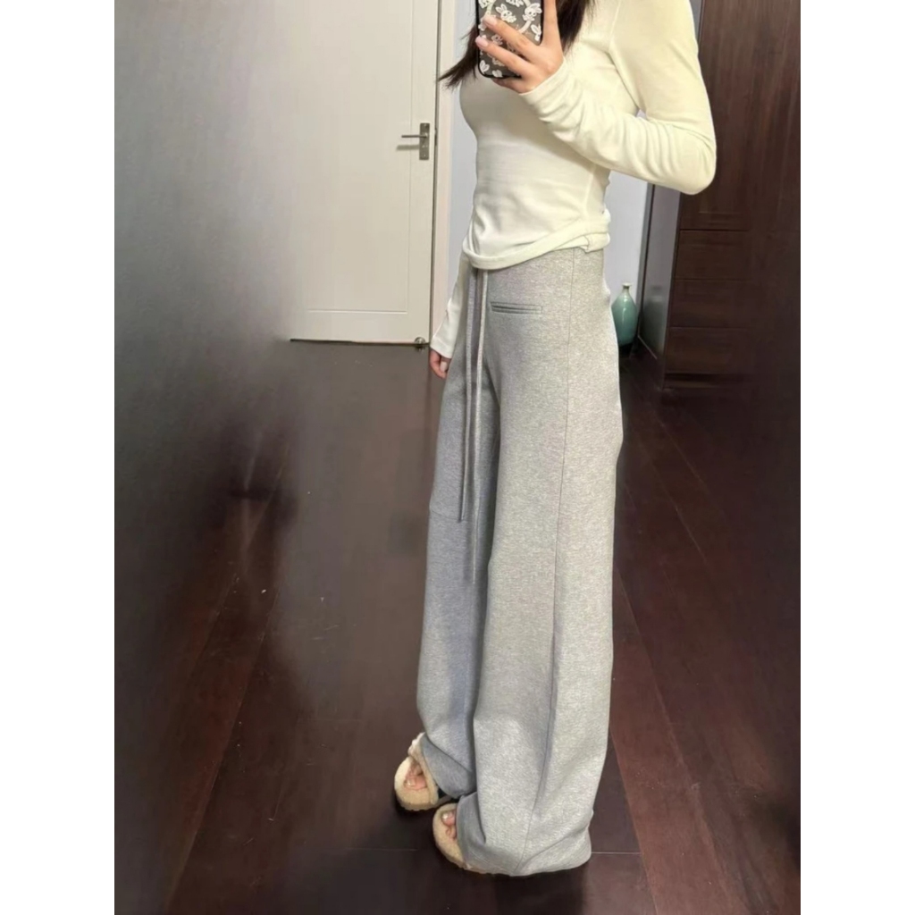 2toyoung Celana Kasual Lurus Longgar Serut Pinggang Tinggi Wanita