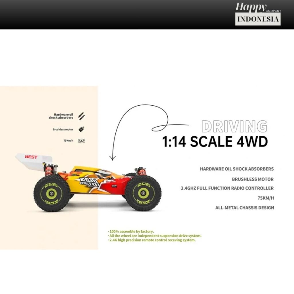 RC Car WL 144010 RC Buggy Brushless Drift 1/14 Metal Chassis 75Km/H Mobil RC Balap