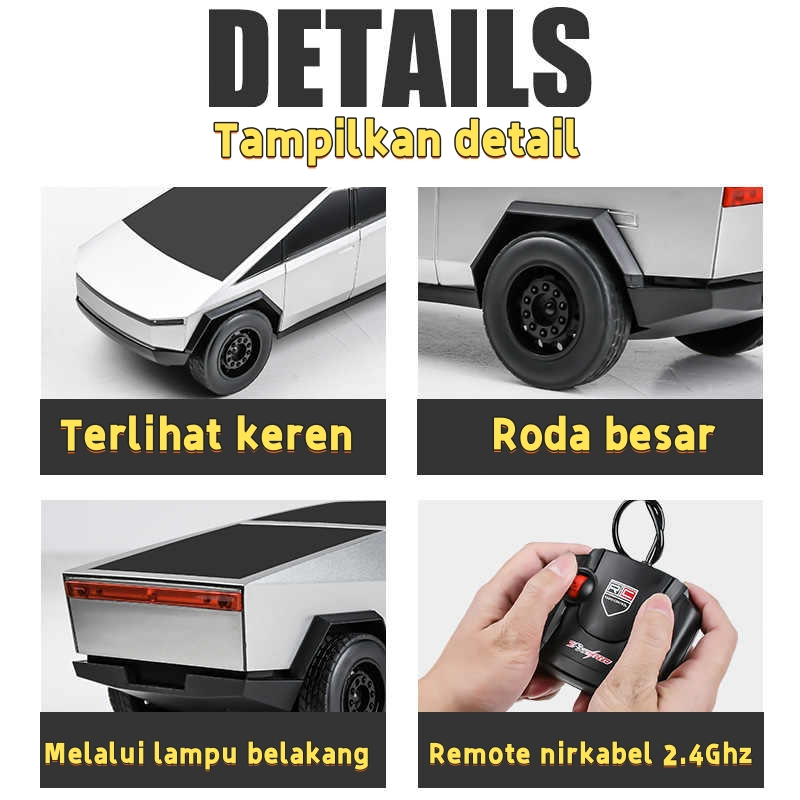 【】Kuboy Mobil dengan remote control 2.4Ghz Truk pickup saber Tesla Cyber Truck Mobil mainan 1:14