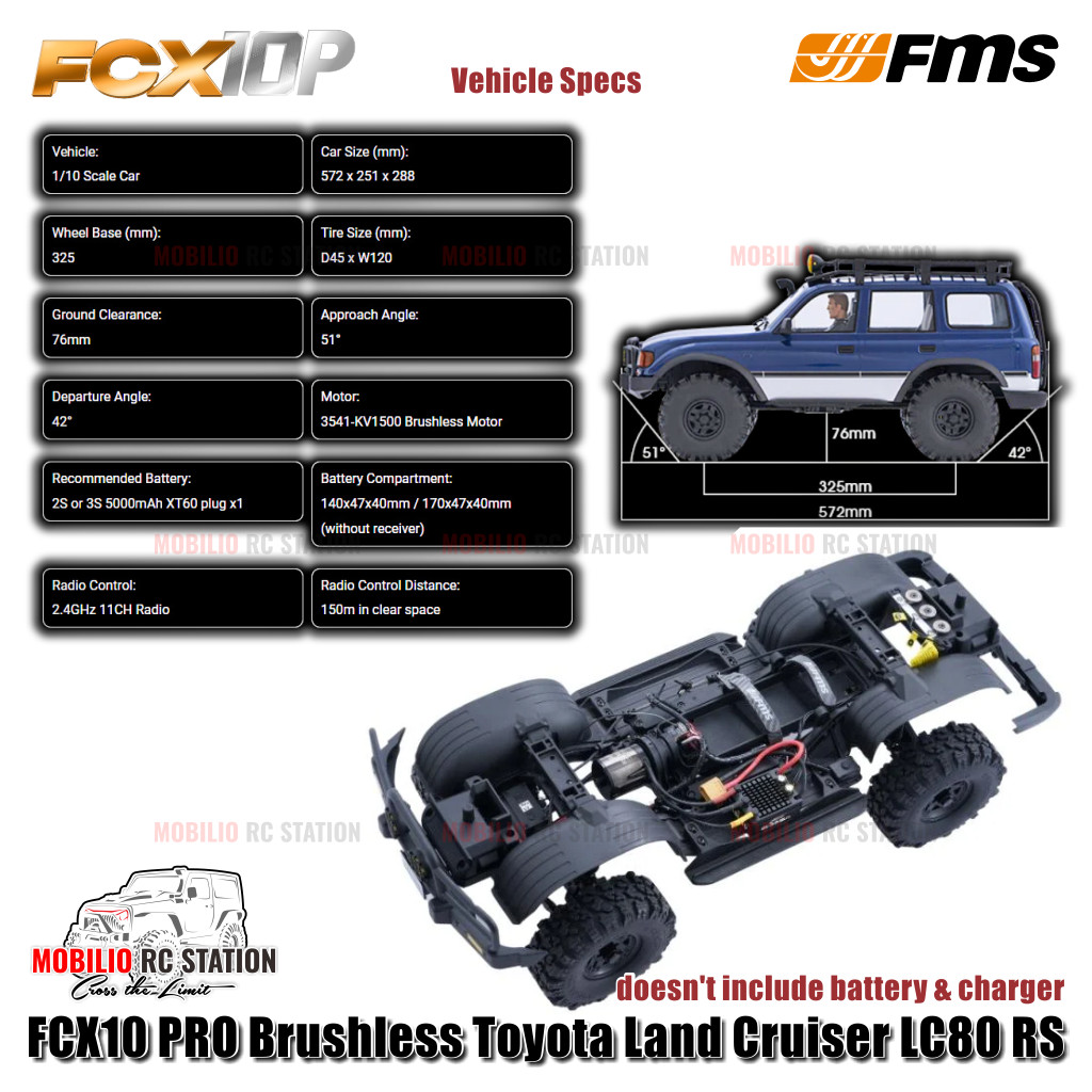 FMS FCX10 PRO Brushless Toyota Land Cruiser LC80 RS RC Crawler Adventure RTR