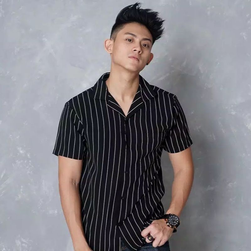 Kemeja Salur Pria | Kemeja Stripe Cowok Lengan Pendek | Bahan Woolpeach Baloteli Size M L XL