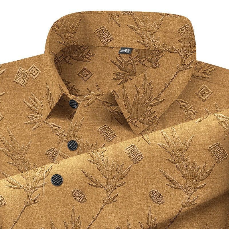 [Jacquard tiga dimensi] Kemeja POLO pria kerah persegi kancing sutra es baru