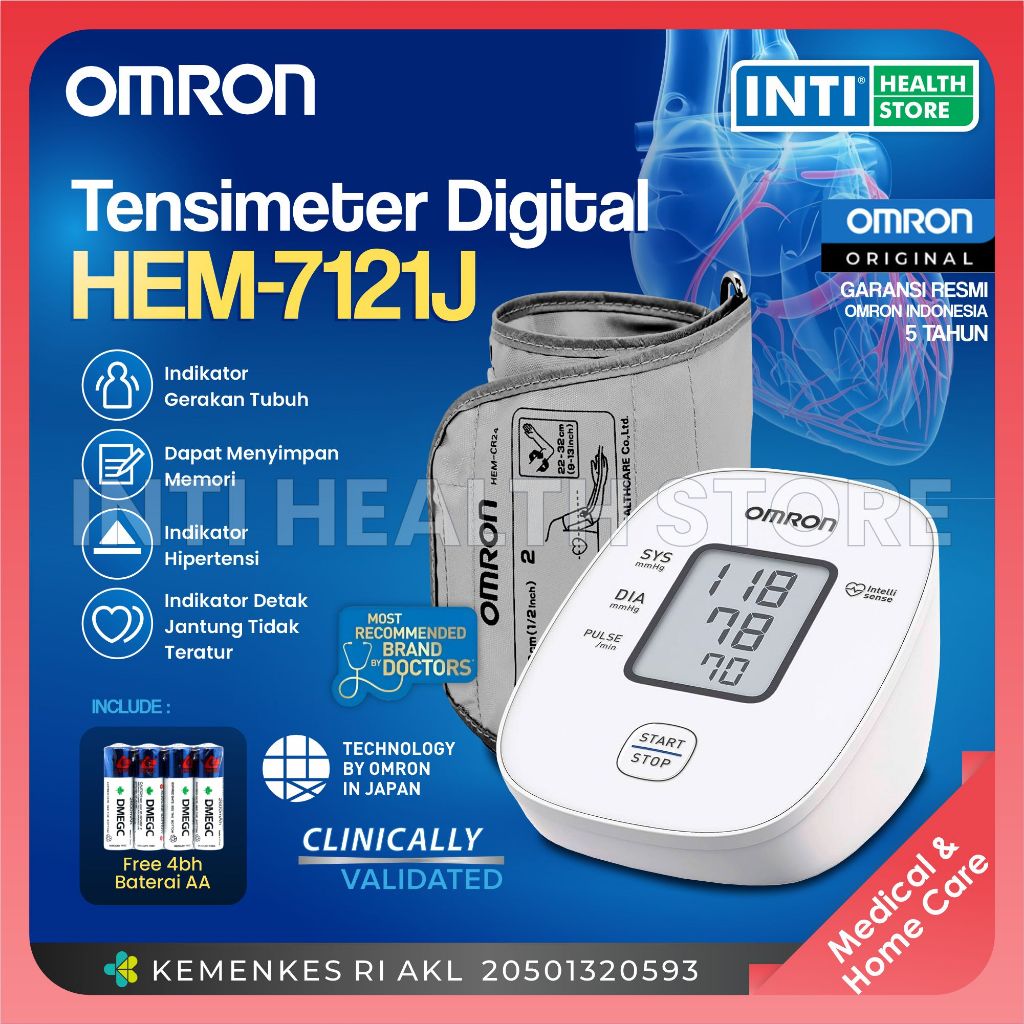 Omron | Tensimeter Digital HEM 7121J | Blood Pressure Monitor