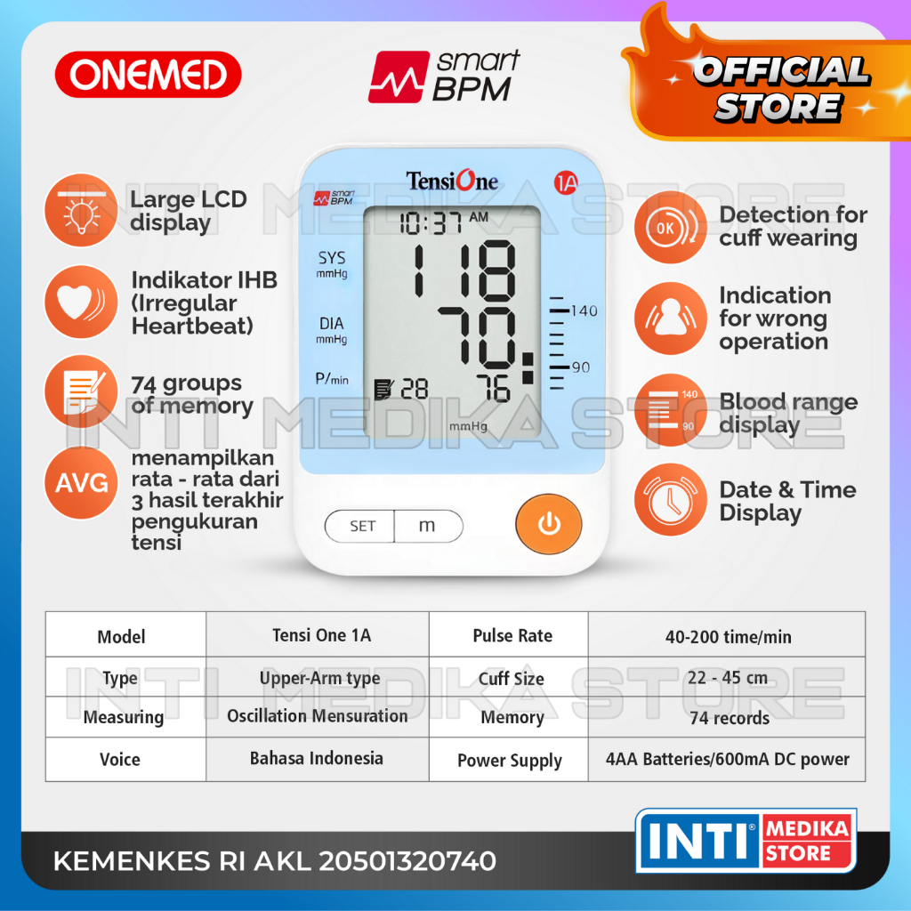 ONEMED - Tensimeter Digital TensiOne Voice 1A BLUE 22-45cm | Tensi One Dengan SUARA + FREE ADAPTOR