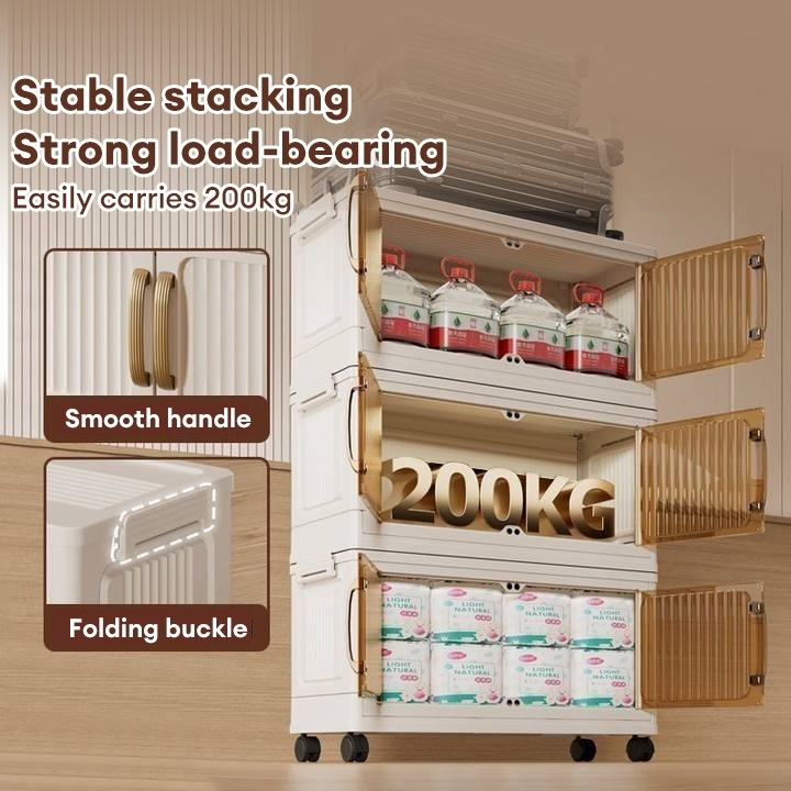 Lemari Lipat Plastik Besar 50CM Dengan RODA Kabinet Penyimpanan Multifungsi