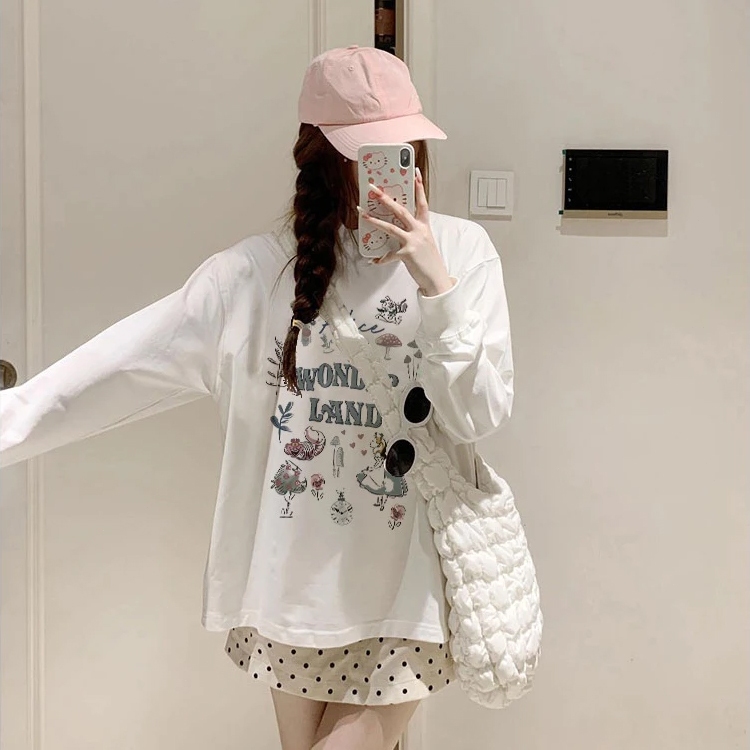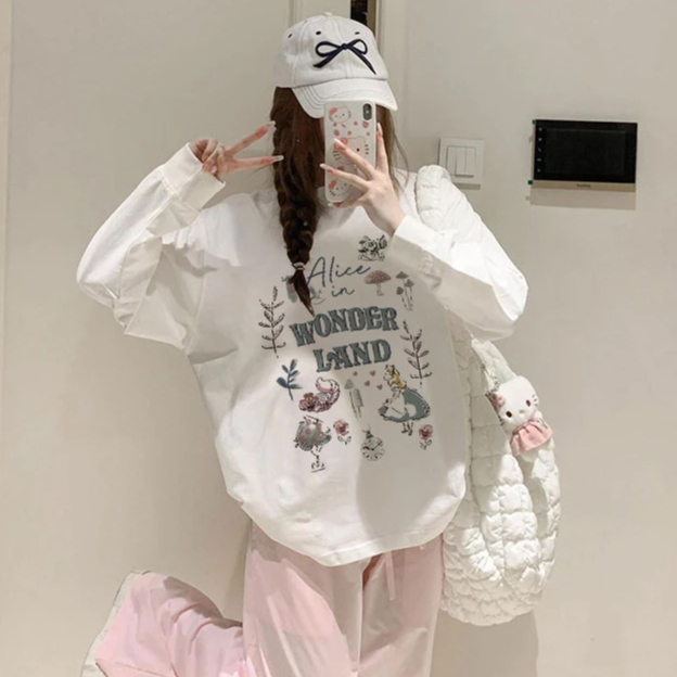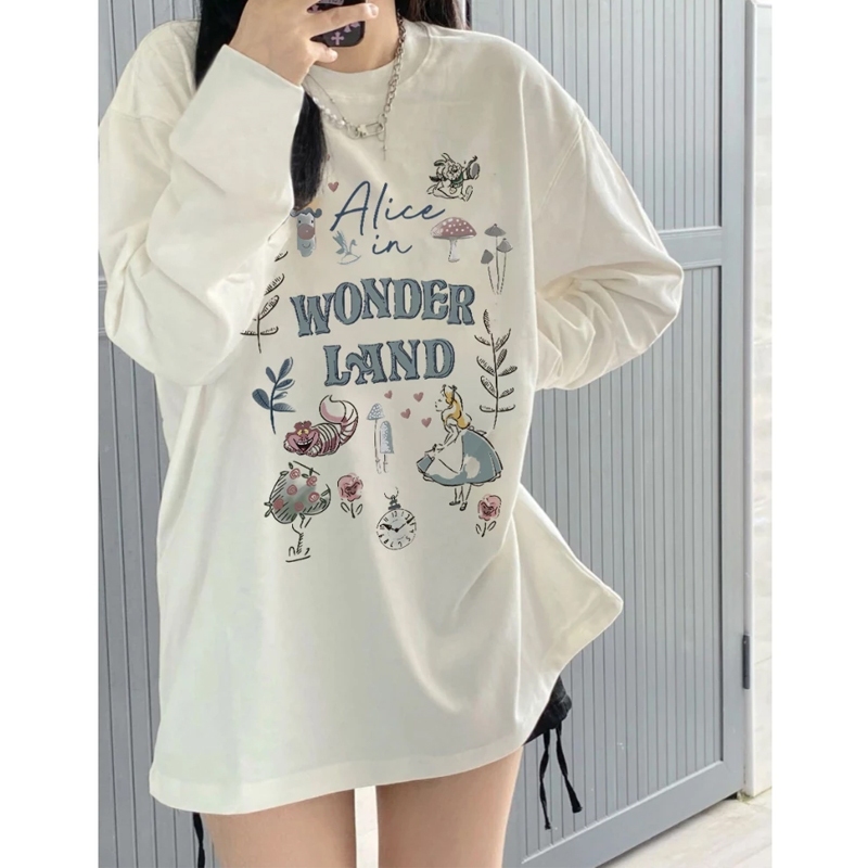 YIKOO - Kaos Wanita Lengan Panjang Oversize Causual Cotton T Shirt Korea