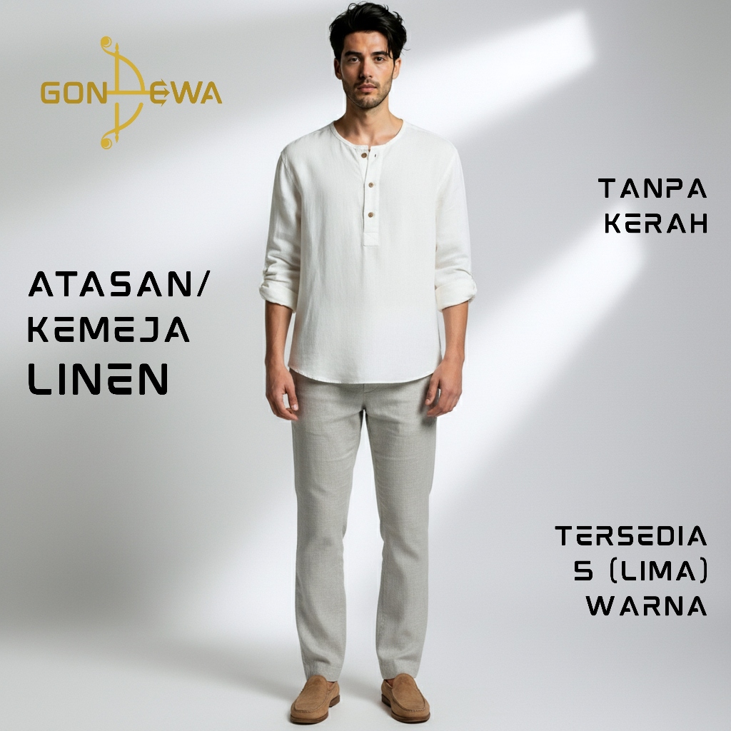 Kemeja Loose Linen Kasual Pria • Atasan Putih Lengan Panjang • Korean Look • Sahara Series by FR