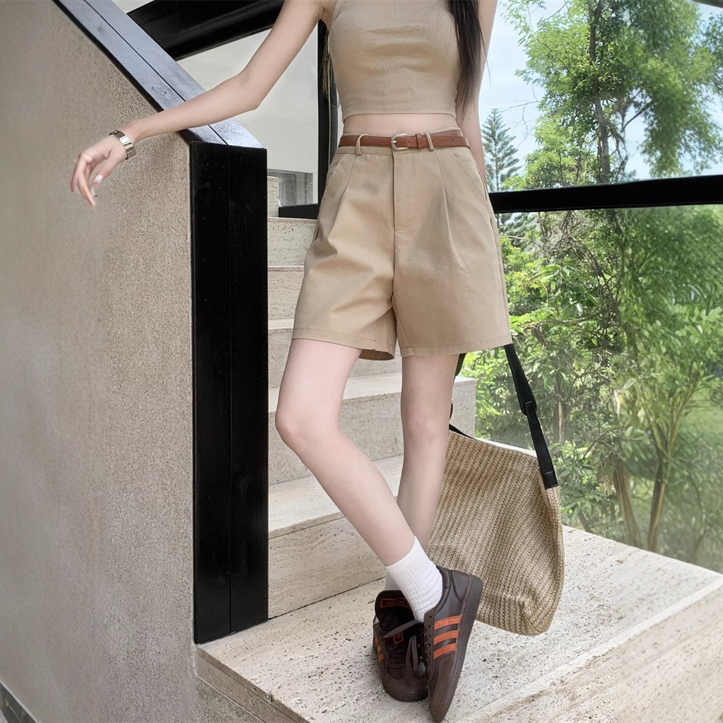 YURUMA Celana Pendek Wanita Lenbach Ukuran Besar Pinggang Tinggi Kaki Lurus Celana Pendek Kerja Kaki Lebar