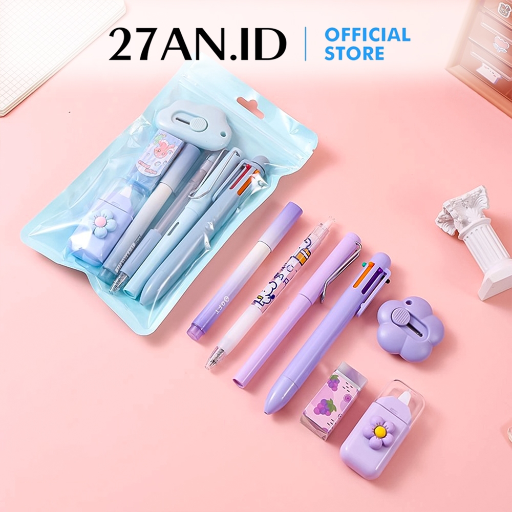 (27An.Id) Alat Tulis Set 7 In 1 Lengkap H1042 Atk Pulpen Pensil Penghapus Dengan Cutter Lucu