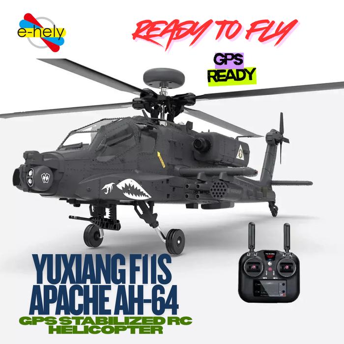 YUXIANG F11S APACHE AH-64 GPS STABILIZED RC HELIKOPTER SIAP TERBANG RTF DENGAN KONTROL JARAK JAUH 2.4G & BATERAI 11.1V 1800MAH 30C