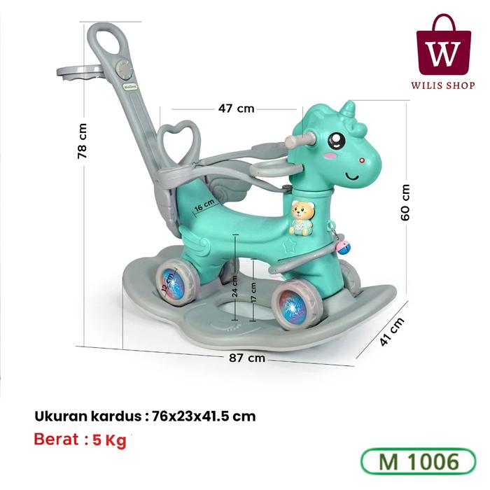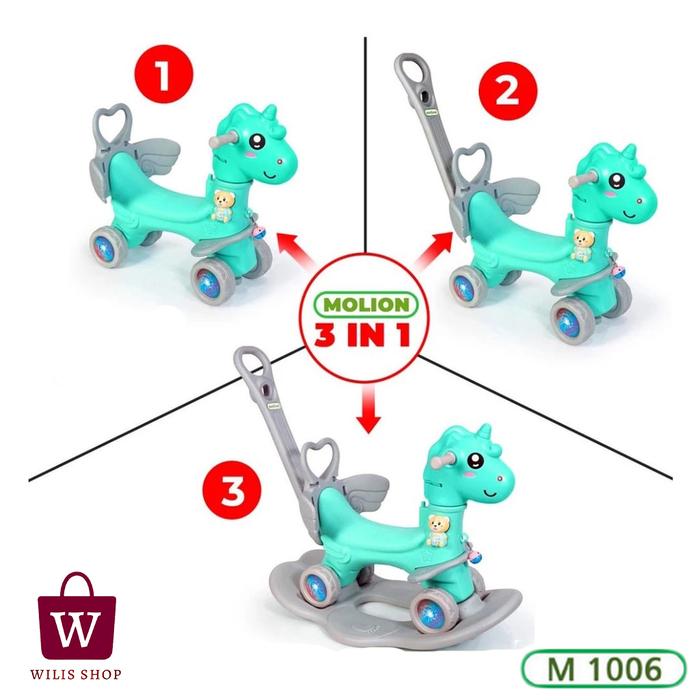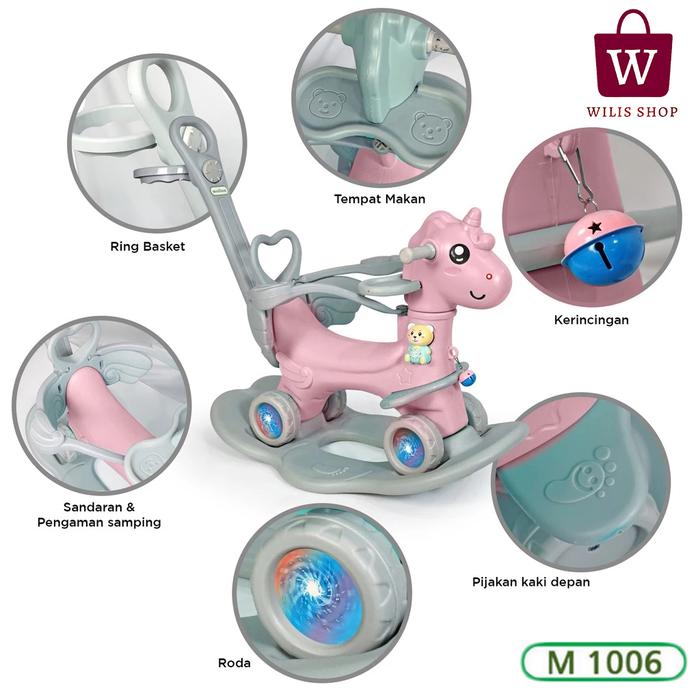 M1006 MAINAN KUDA KUDAAN MUSIK ANAK ROCKING HORSE 3IN1 JUNGKAT JUNGKIT BALANCE 2-4TH - M1006-3IN1-PINK