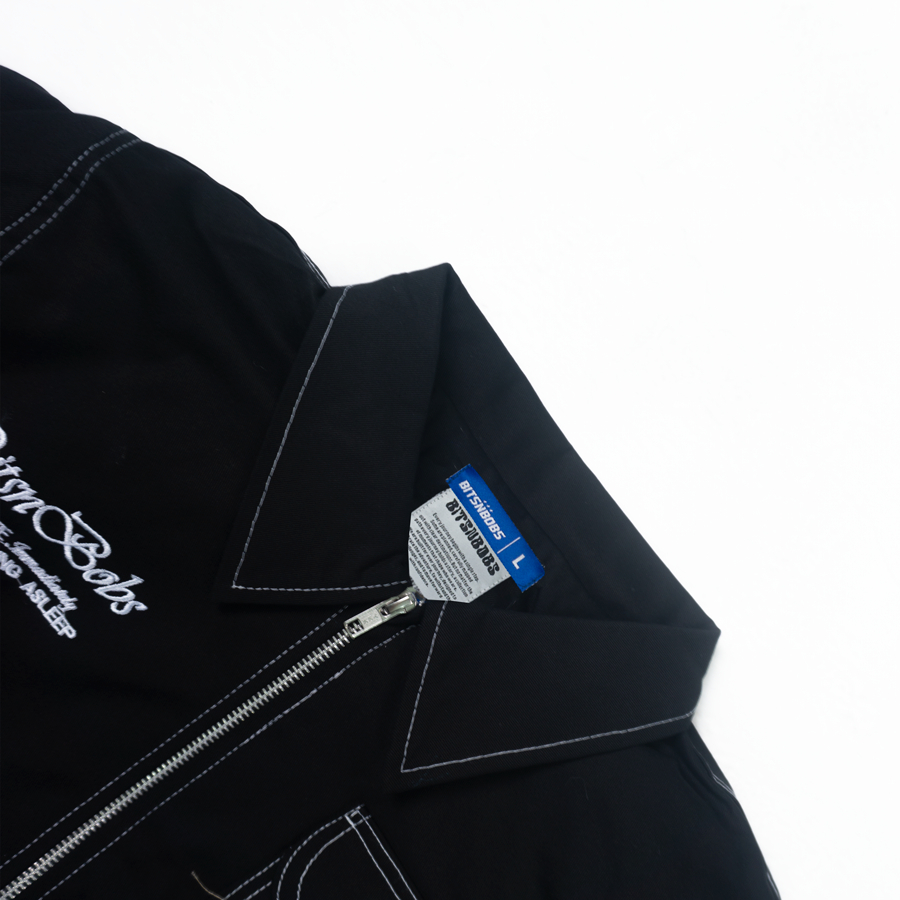 Bitsnbobs76 Boxy Work Jacket Black Hypno Twill Oversized