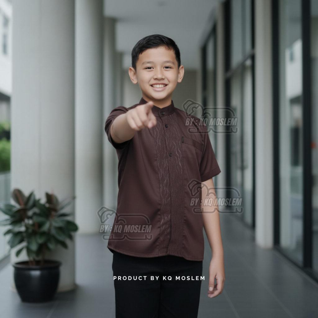 Baju Koko Couple Ayah Anak Laki Laki Warna Mahogany Lengan Pendek Motif Embosh Bahan Katun koko Terbaru 2026