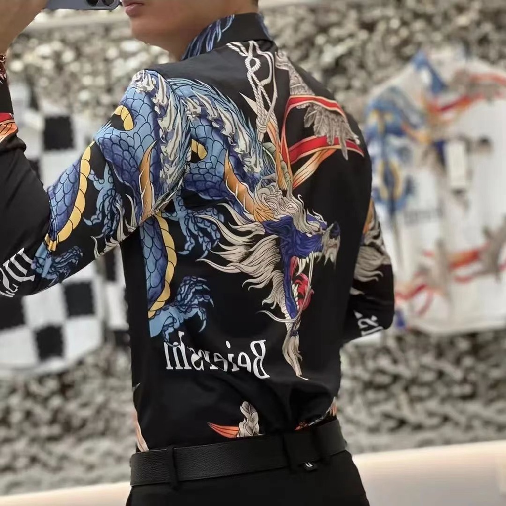 Men's shirt early spring printed hot diamond men's high-end shirt dragon pattern shirt
