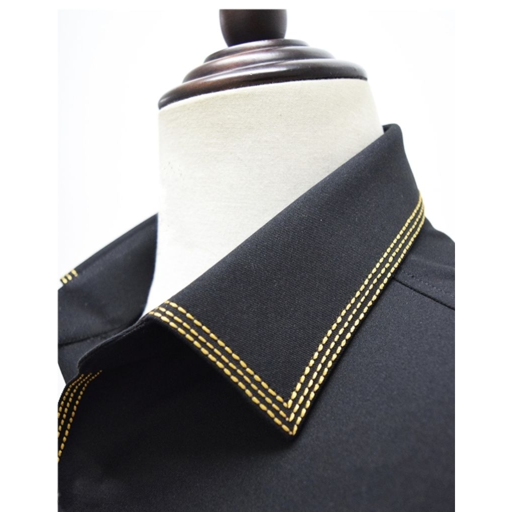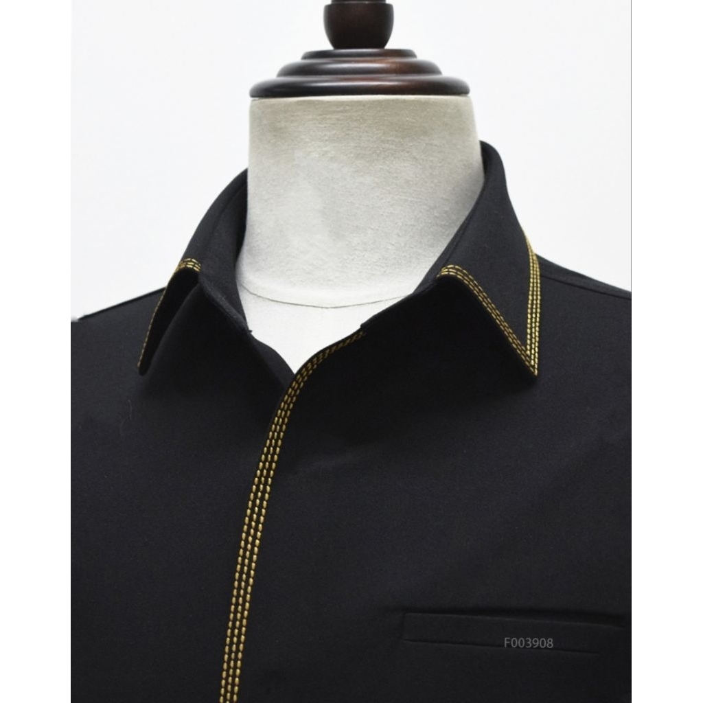 Kemeja Pria Hitam Premium Exclusive Benang Smock Timbul Lengan Pendek dan Panjang