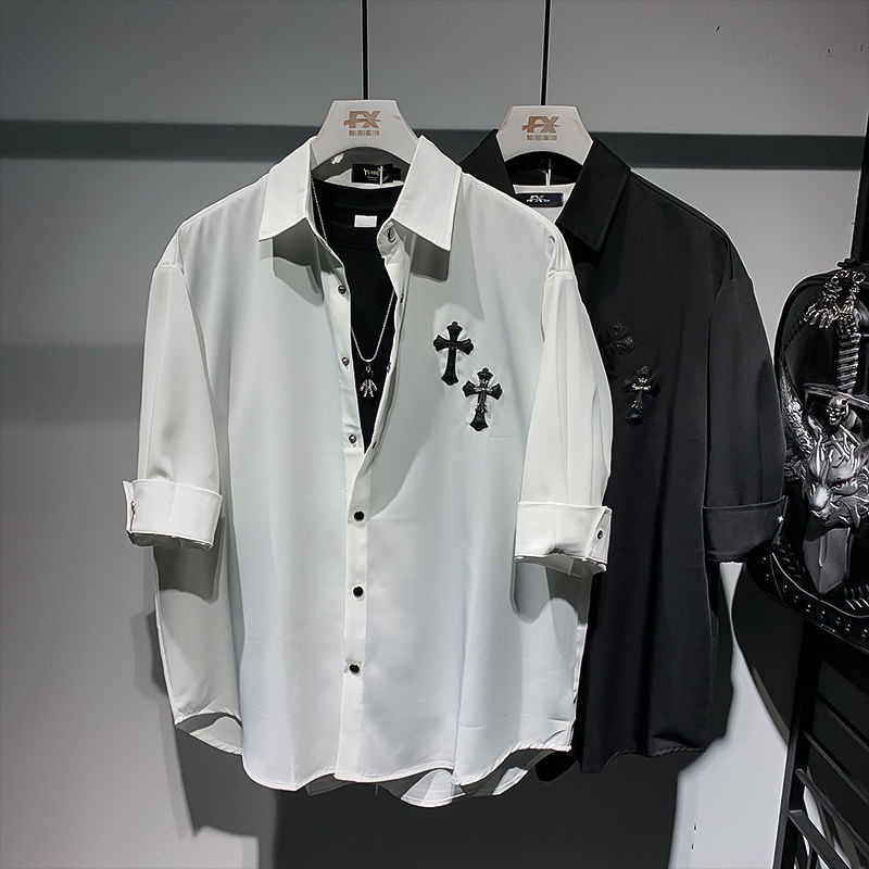 Design sense Korean version trendy men's short sleeved shirt 2023 summer new coat ruffled and handsome high-end men's shirt