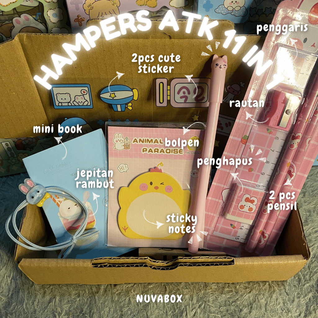 Nuvabox - Set Alat Tulis 11 In 1 A+ Lengkap Free Ucapan / Gift Hadiah Hampers Kado Sekolah / Gift Box Cute Ulang Tahun