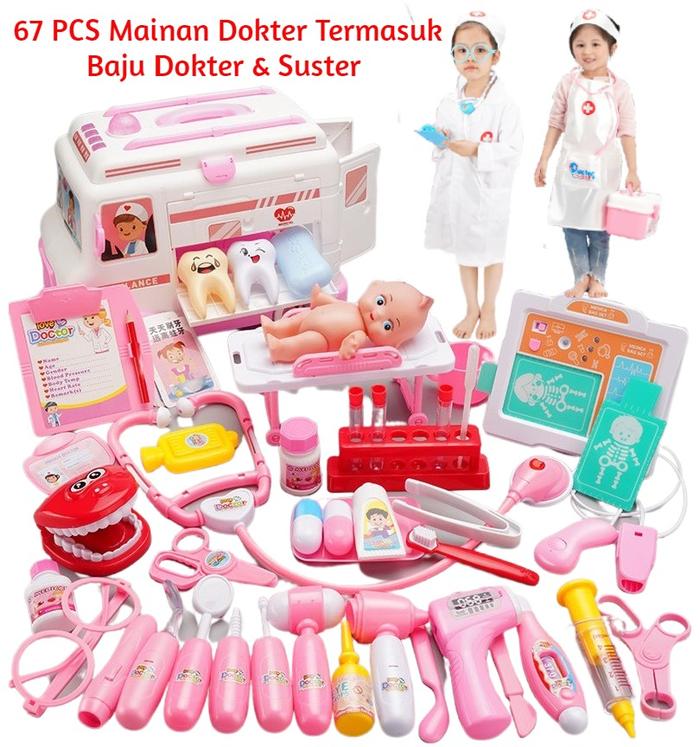 67 PCS MAINAN DOKTER BUS AMBULANS ADA BAYI TERMASUK BAJU DOKTER SUSTER - 67 PCS