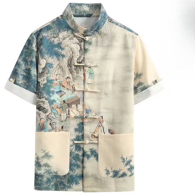 New Men's Short-Sleeved Shirt/Chinese Style Fashionable Print Shirt