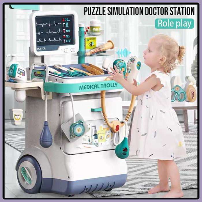 DOKTER DOKTERAN MAINAN ANAK PENDIDIKAN SIMULASI DOKTER MAINAN SET ANAK PEREMPUAN EDUKASI ANAK - MEJAKASIR PINK 49PCS