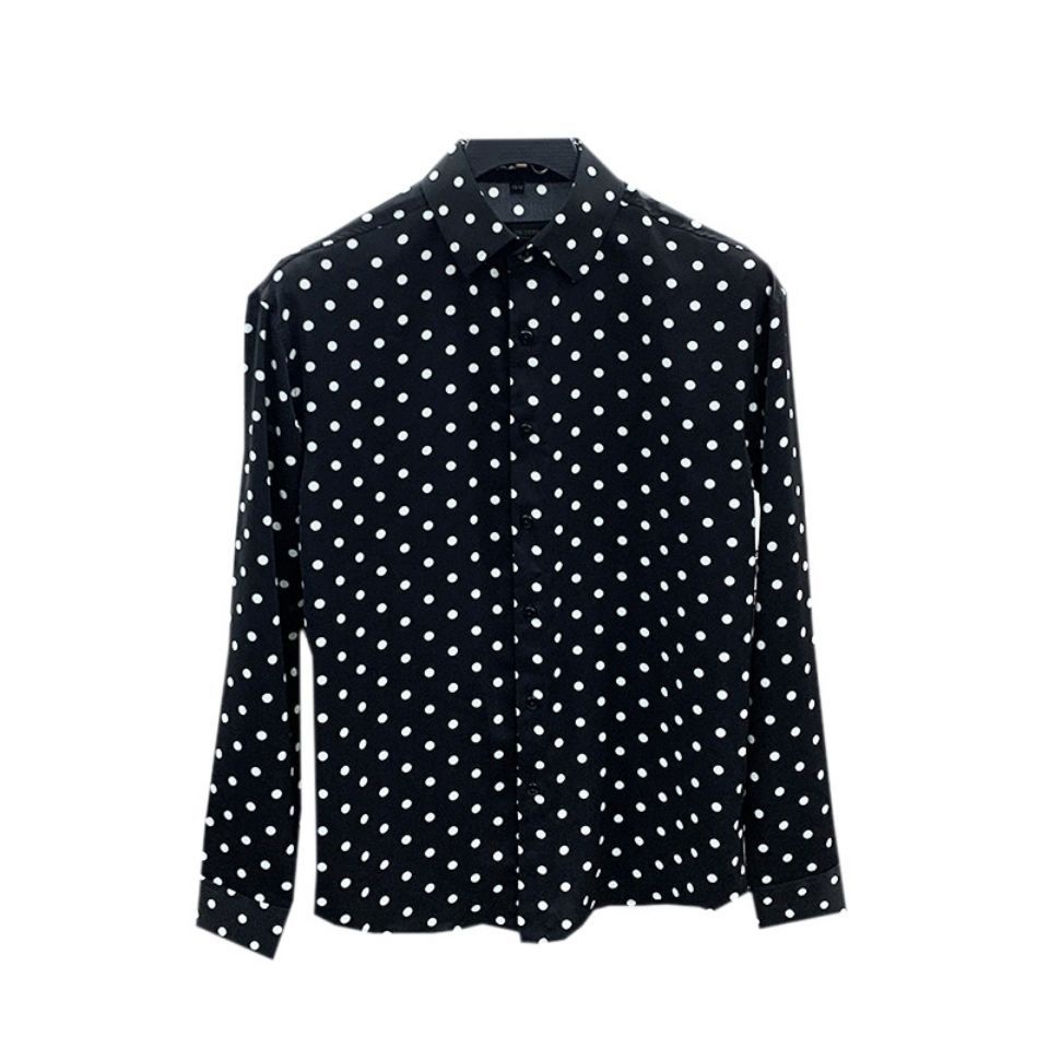 Korean high-end drape shirt for men's casual Korean version, no iron long sleeved black and white polka dots, handsome shirt in trend