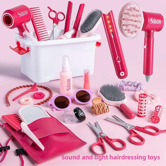 CHILDREN'S HAIRDRESSER ROLE PLAY TOY SET SIMULATION BEAUTY SALON KIT GIRL'S HAIRDRYER CURLING IRON SCISSORS HAIR CUTTING