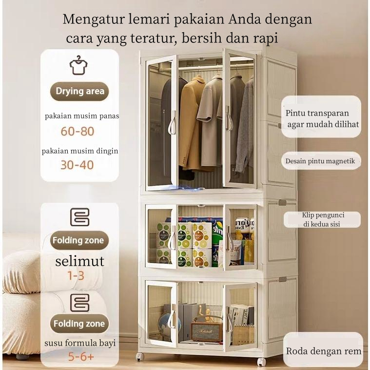 ABC BEAR 55cm lemari baju gantung lemari pakaian plastik Tahan lembablemari plastik ukuran sangat besar Storage Box lemari plastik susun lipat