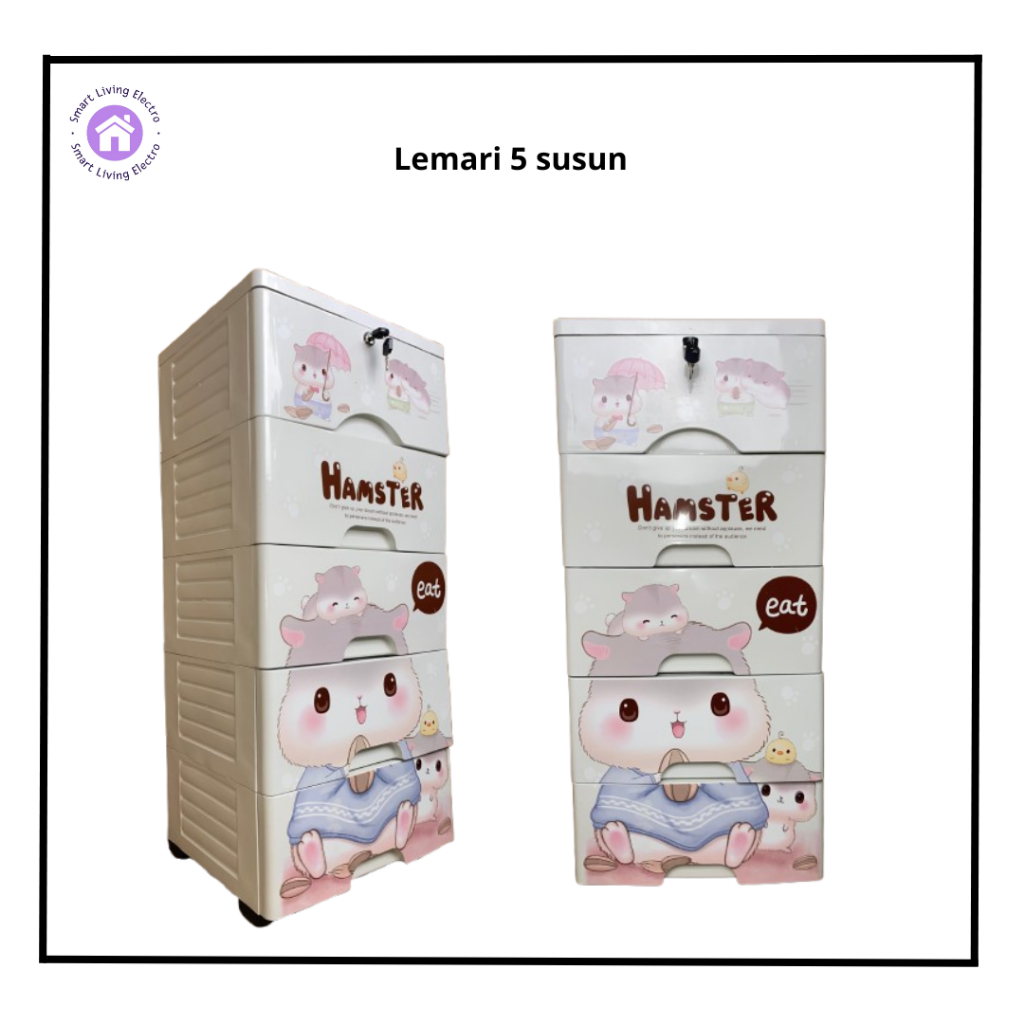 Lemari Pakaian Anak 4 Tingkat 5 Tingkat Lemari Plastik Karakter Penyimpanan Pakaian Baby