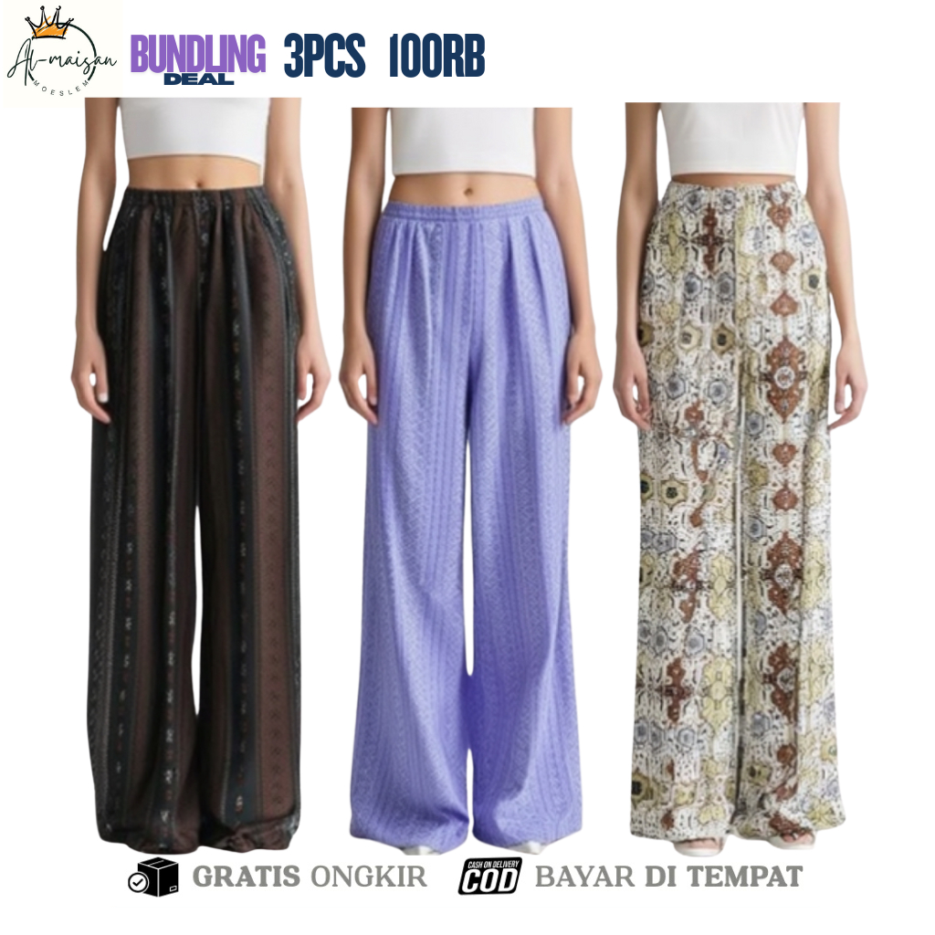 Almaisan - Paket Murah Isi 3pcs Celana Kulot Hommy Motif Terbaru Viral Kekinian Highwaist Daily Korea Style Bahan Rayon Viscose Adem Lembut