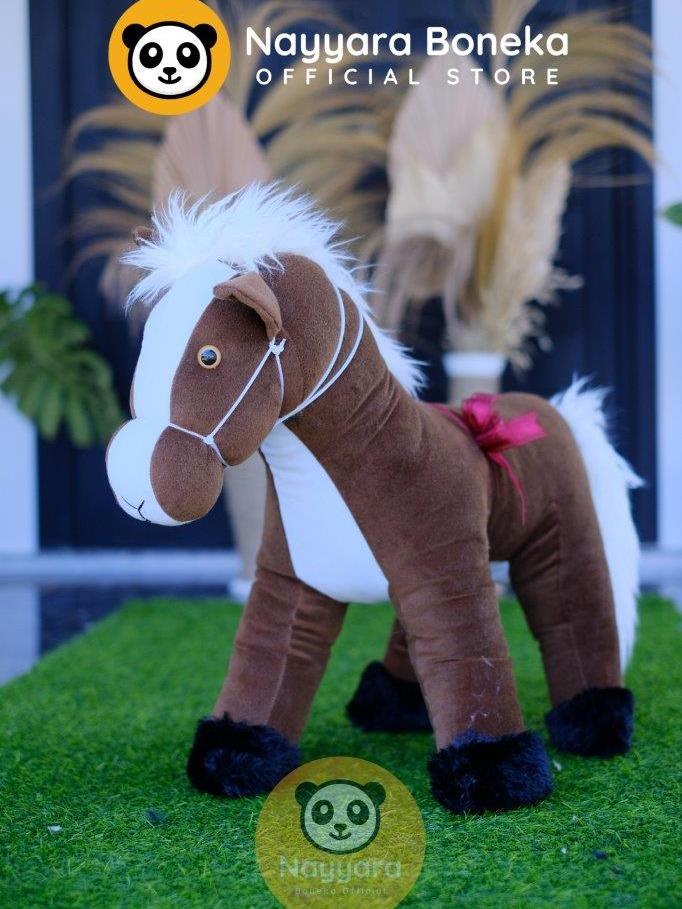 BONEKA KUDA STANDING BERDIRI JUMBO 1 METER PREMIUM SN - COKLAT TUA, JUMBO 1 METER