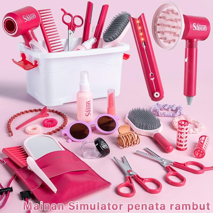 MAINAN SALON ANAK PEREMPUAN /MAINAN CEWEK PENGERING RAMBUT HAIR DRYER MAINAN ANAK PEREMPUAN SET LENGKAP - TOOLS 47PCS(BOX)