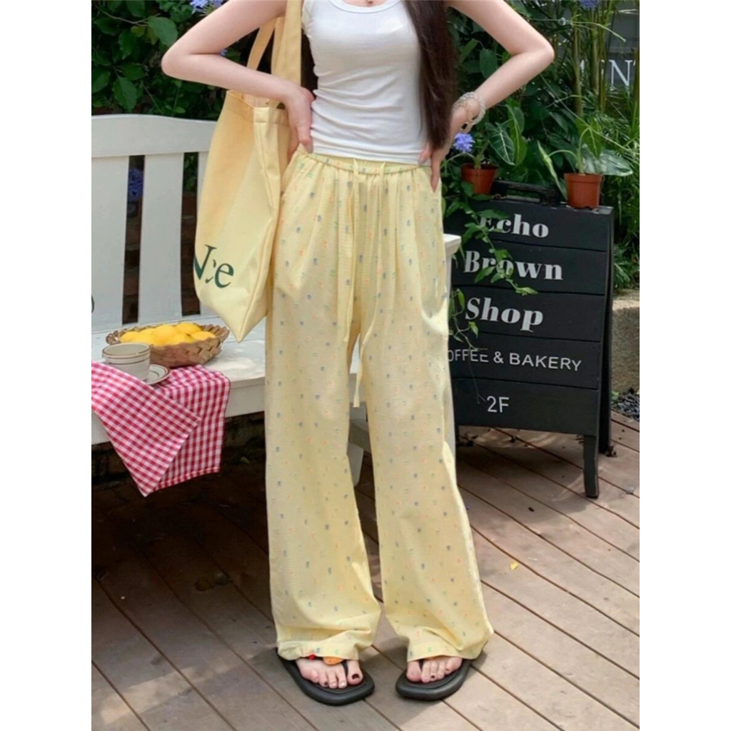 2TOYOUNG Celana panjang santai wanita dengan pola kotak-kotak dan polka dot, model lebar, musim panas celana wanita kekinian